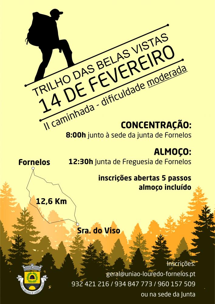 Aproxima-se a realização da "II Caminha Trilho das Belas Vistas" , evento organizado pela União de Freguesias de Louredo e Fornelos e com data marcada para 14 de fevereiro de 2016.
