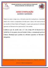 Lembra-se que de acordo com o nº 2 do Artigo 28º do Decreto-Lei nº 14/2019 de 21 de janeiro, fora do Período Crítico, a comunicação prévia à Câmara Municipal para queimas e sobrantes agrícolas ou florestais é obrigatória.